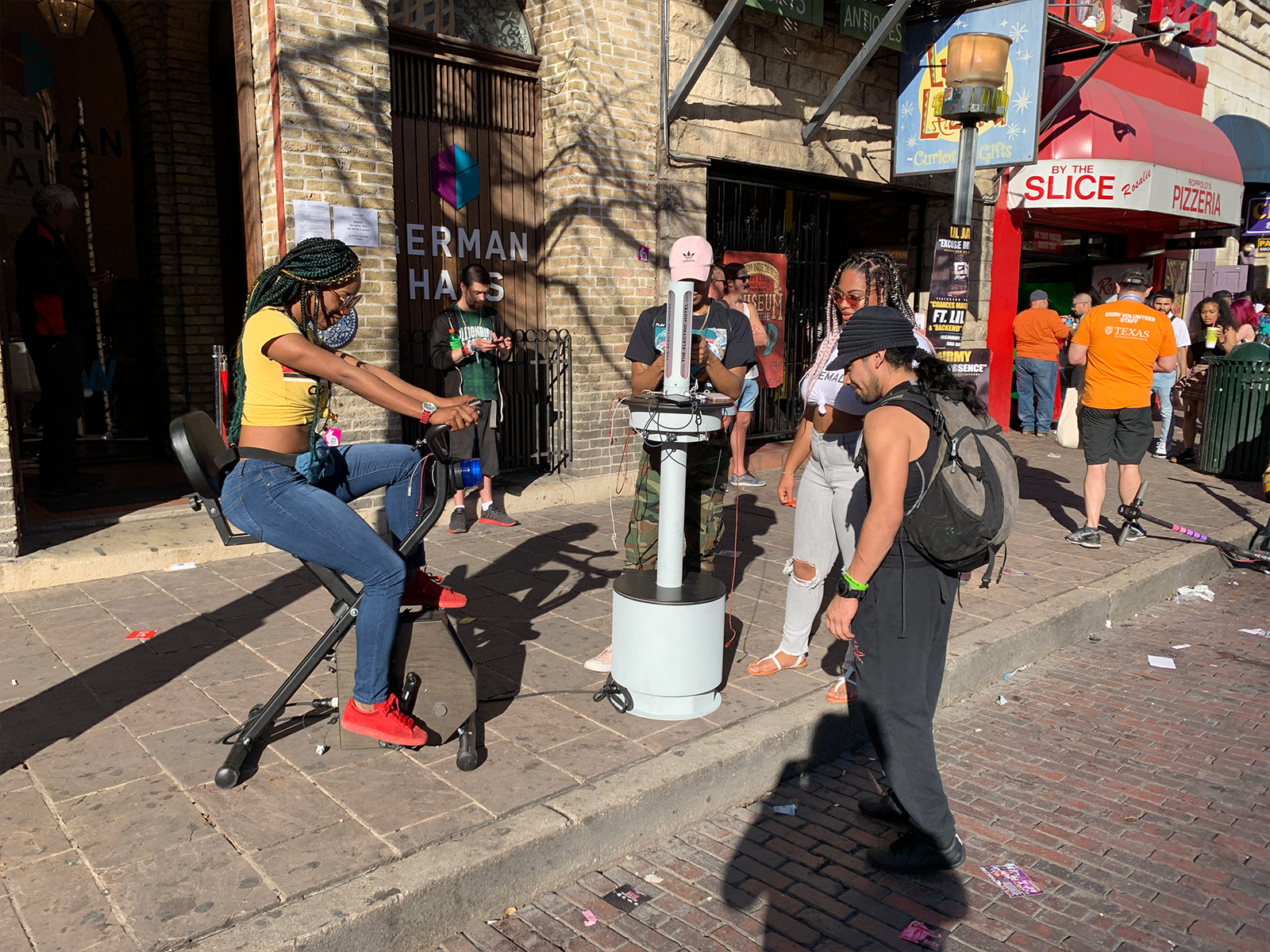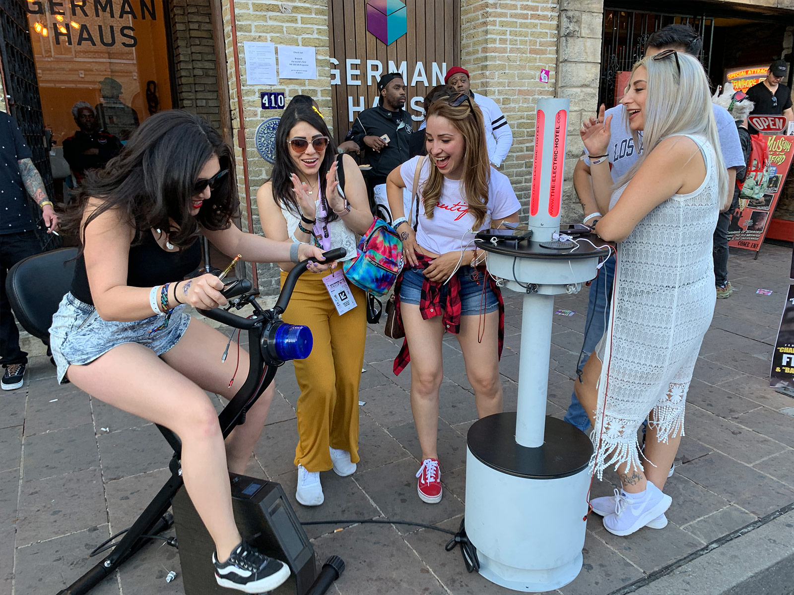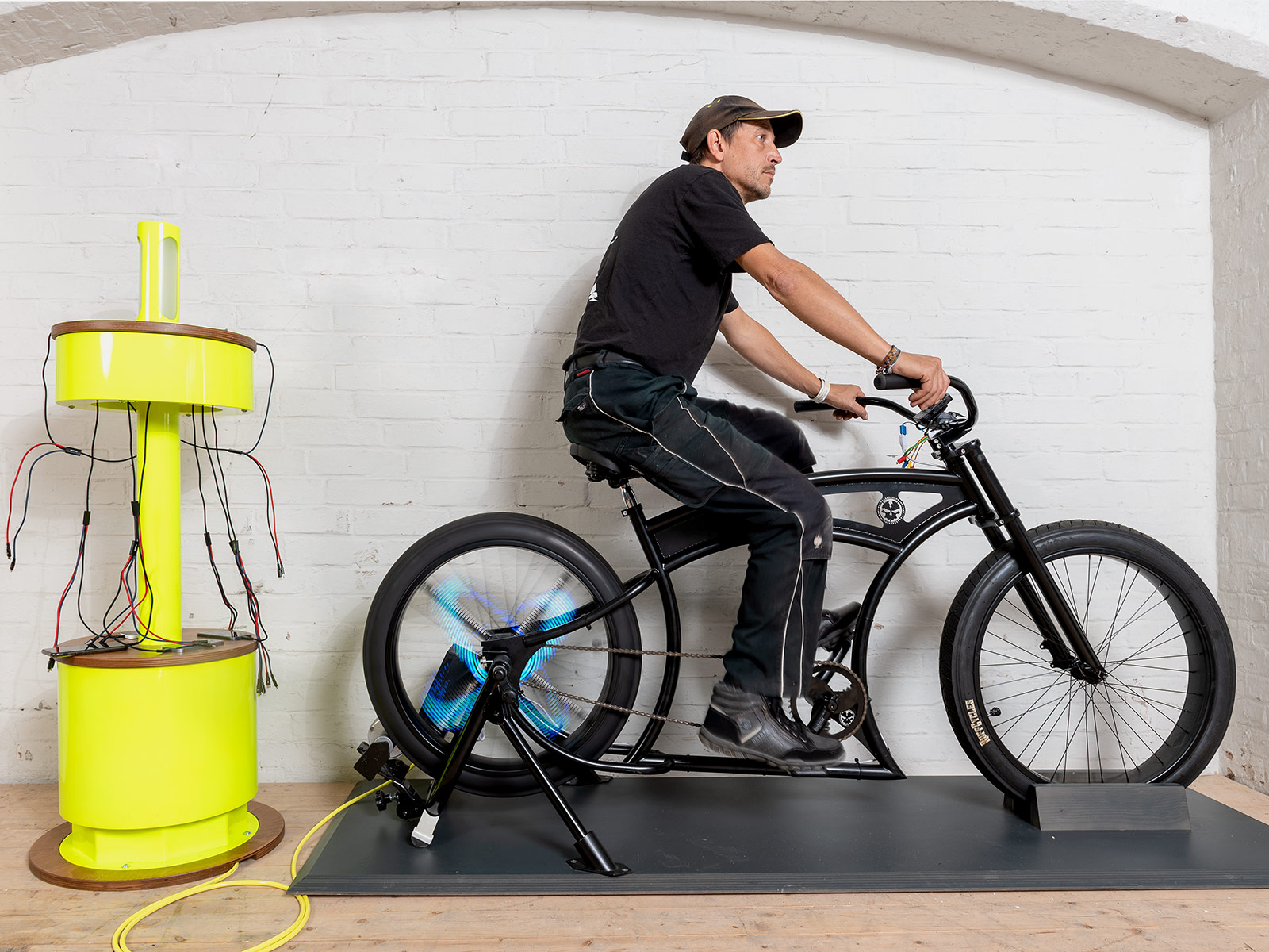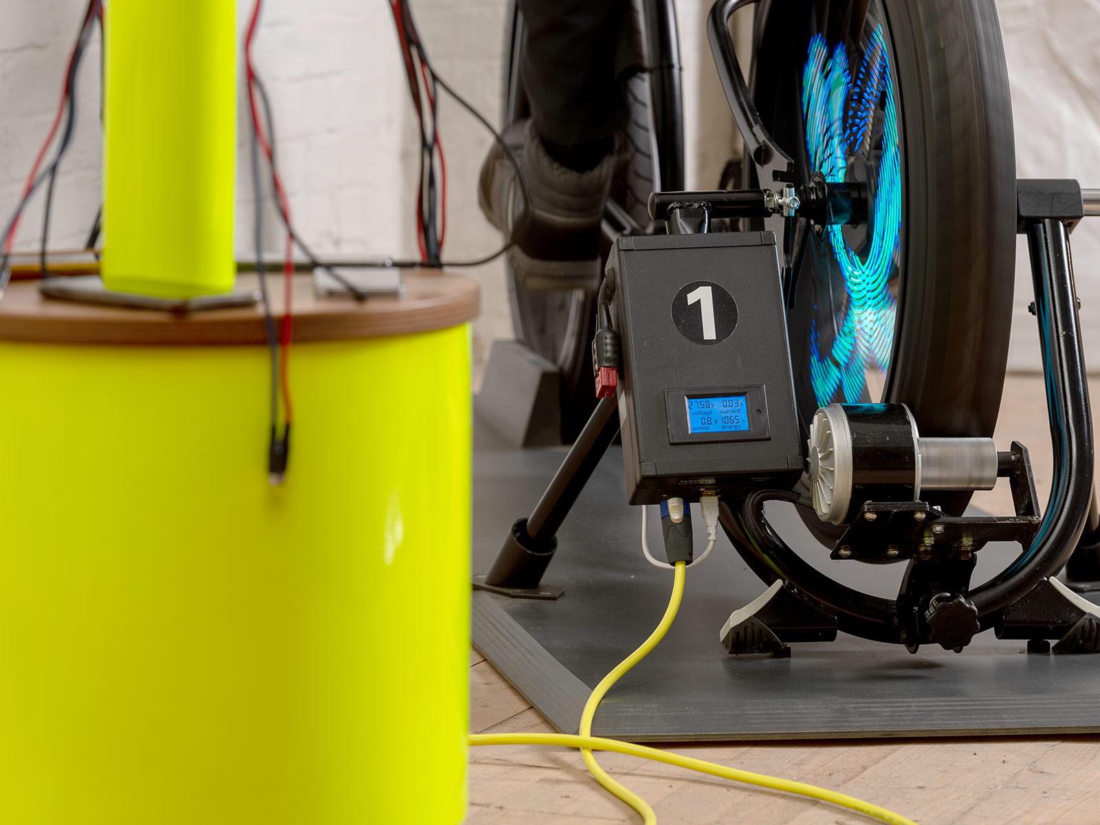 Der optionale Tretgenerator erhöht den Fun-Faktor noch einmal deutlich: Hier kann jeder, der Lust hat, in die Pedale treten und so dazu beitragen, dass alle mit WIREFIRE verbundenen Geräte umweltfreundlich per Muskelkraft aufgeladen werden – angefeuert von den anderen.