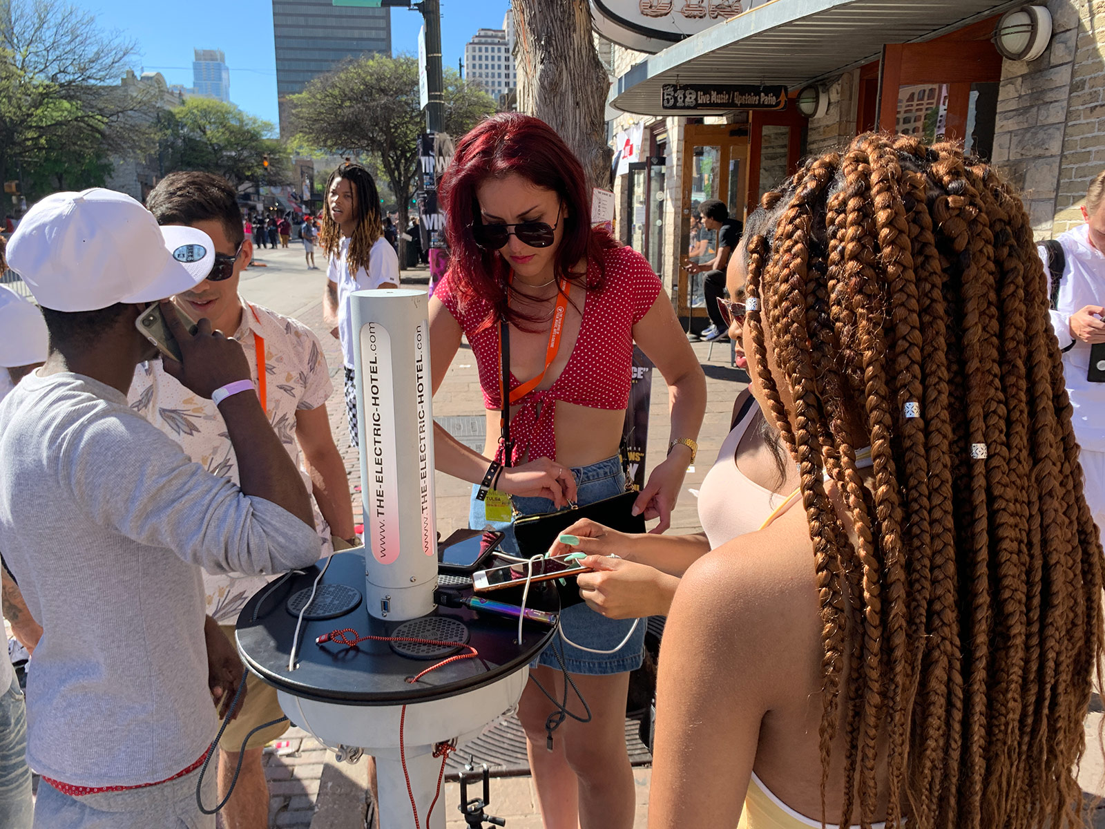 Auf Veranstaltungen und Musikfestivals, auf Messen und Kongressen, in Shops und Einkaufszentren, in Bars und Clubs, an Raststätten und Filmsets, in Kinos und Freizeitparks, in Bahnhöfen und Hotels, auf Flughäfen und Kunstausstellungen. Und überall sonst, wo man sich immer schon eine Lademöglichkeit gewünscht hat.